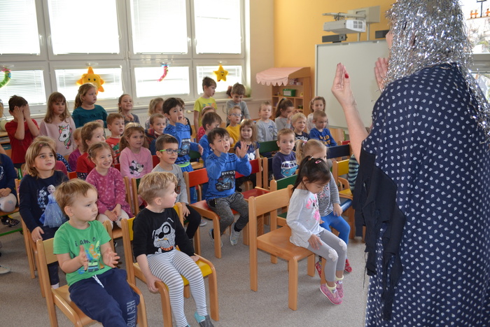 I v tomto, ještě hodně mladém, roce si budeme užívat divadel. Jako první k nám přijela oblíbená pohádková babička z divadla Zvoneček. Tentokrát rozmotala šedivé klubíčko, v němž se ukrývala čarodějka a myšky. ,,Já jsem Blažena“ představila se jedna z myšek. ,,A já jsem Blažena“ skočila jí do řeči družka. ,,My jsme totiž obě Blaženy, ona si to jinak naše čarodějka nezapamatuje“ upřesnily zamotanou situaci. Čarodějka se nám snaží vysvětlit, že se chystá založit hudební školu, protože jí tento nápad přepadl ve snu. Treperendy Blaženy remcají, že prý nemá vůbec nadání a hudební sluch. No, nemá, zjistíme záhy. To jí ale nevadí, aby tahala z kapsáře všemožné hudební nástroje, jako třeba hřeben, pokličky, kastrólek, trychtýř a tak různě. Například létací koště přeprogramovala na basu. A ta tedy tvrdila muziku. Rovnou jsme založily Lipský bigbeat, hrajeme na čarodějnické nástroje a rozezpíváme se ,,do re mi …….“ . To je jednoduché, to je jako chůze po schůdkách. Jsme fakt dobrý ansábl.