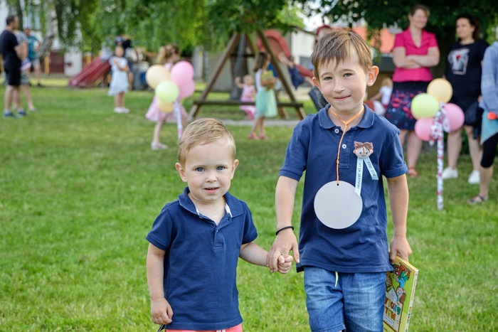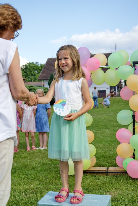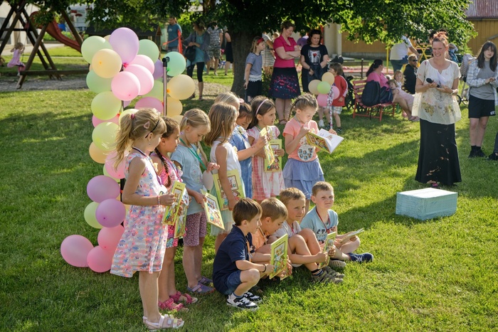 Červen je měsícem jahod, otevřených bazénů, sandálek, opálených ramen a loučení. Kdosi se loučí s velkou školou, kdosi zase se školkou a všichni se loučí se školním rokem. I v naší školce už loučení proběhlo. A bylo, jak se na loučení patří, slavnostní a veliké. Hlavní role se samozřejmě zhostili ošerpovaní předškoláci, kteří kromě prokázání svých znalostí a převzetí knížek na památku dostali ještě poslední úkol. Předat svá místa, která v šatně opouštějí, novým dětem- svým následovníkům. Ne, nevedli je do šatny, ale předali jim malované kamínky se svojí, teď už vlastně bývalou, značkou.