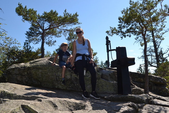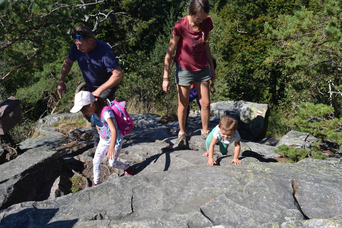 V sedle Kluku si můžeme poklepat na ramena. Jsme tu. Některým je třeba vyseknout pochvalu před nastoupenou jednotkou. Dostat sem kočárek a dostat sem děti sotva chodící si zaslouží potlesk. A Klárka to celé dala s bolavou nožičkou. Za odměnu si opečeme buřty, baštíme voňavý oběd, Ilonka s Anetkou rozdávají čokoládu a postupně chodíme na skalnatý vrchol Kluku. Najednou bychom se tam nevešli. Ale je tu krásně. Výhled do údolí Křemže je orámován zkroucenými borovicemi rostoucími z puklin skály. Místo, kde by se dalo sedět hodiny a hodiny. Úžasným zážitkem bylo pozorovat malinkou bosou Maiu, lezoucí nebojácně po kamenech až na vrchol. A nejen jí. Postupně se nahoře vystřídaly skoro všechny děti. Máme my to skvělé děti do nepohody.