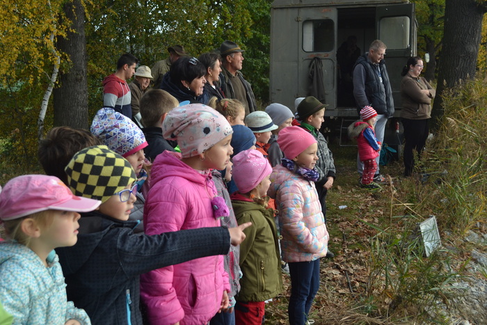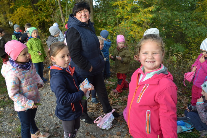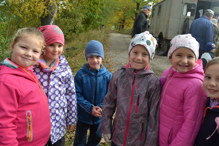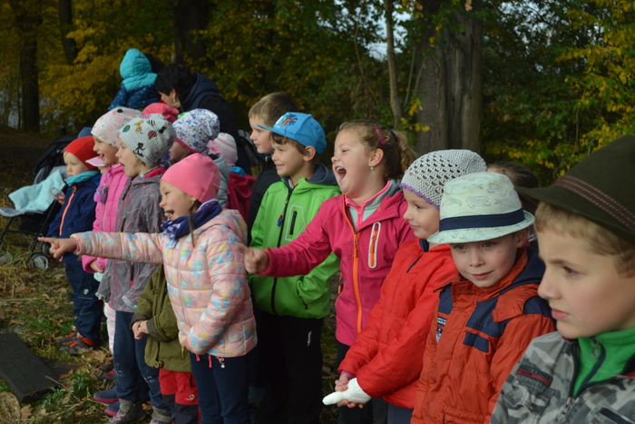 K podzimu patří vítr, pošmourno a výlovy. Vítr a pošmourno se dnes nekonalo, ale výlov na rybníku u Kvítkovic ano. A to nemáme daleko. Pro naše nožičky tak akorát. Tak jsme se my, Kočičky, dneska vydaly hned po svačině na výlov. Cestou kolem ,,sovy" se nám ukazovaly nádherné výhledy do podzimně zbarveného údolí a sotva jsme se nadály, tak jsme seběhly z Kotlov na hráz velkého Kvítkováku, kde už byla připravená auta a ostatní důležitá technika. Technika je důležitá, ale ještě důležitější jsou rybáři ve vysokých kalhotách a gumových pláštích. Pánové se brodili ve studené vodě, zatahovali sítě a ulovené ryby dávali do velikých kádí.