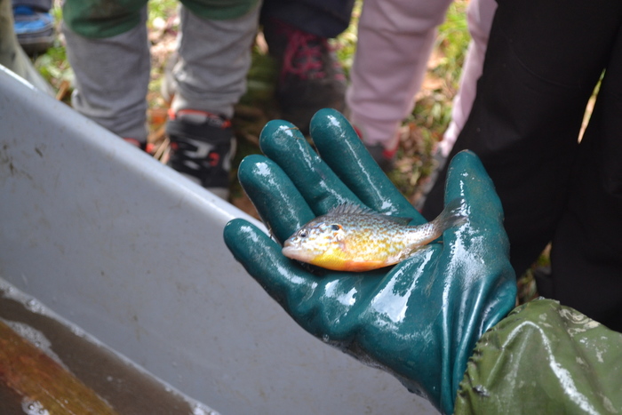 Celý výlov nám vysvětlili a pár kapříků ukázali pěkně zblízka. A dokonce i jiné ryby. Třeba slunečnici. Že je slunečnice kytka a né ryba. Tak my už víme, že i rybě se říká slunečnice. Slunečnice pestrá je pěkná malá rybička a my ji dnes viděly. Mezi rybáři se zkušeně pohyboval i náš Honzík, který dnes kvůli práci s rybami ani nemohl jít do školky. Měl dokonce pravý rybářský zelený klobouk a moc mu to slušelo.