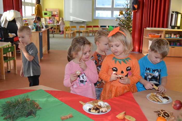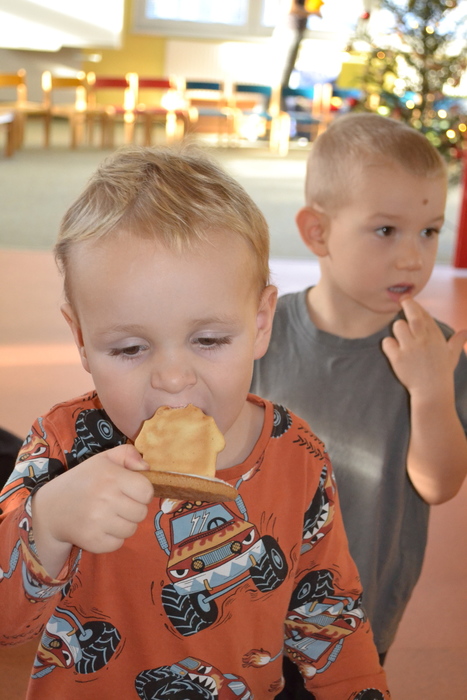 Mezi hraním s novými hračkami ještě ochutnáme cukrovíčko ze sváteční tabule, za které moc děkujeme našim maminkám. A krásný sváteční den je za námi.
