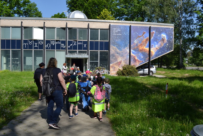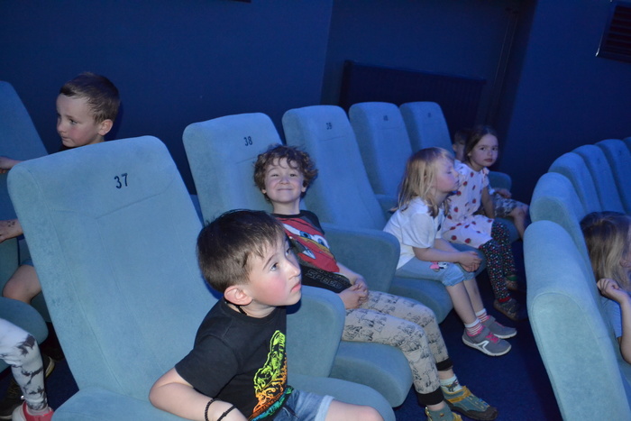 ,,Dobrý den, já mám kraťasy, už je totiž počasí na kraťasy, víte?“ otázal se Kubík dvojice mladých lidí sedících na nábřeží v Budějovicích. Asi nevěděli, neodpověděli. Kubík měl pravdu. Na náš dnešní výlet do planetária se opravdu udělalo kraťasové počasí. V planetáriu se Sluníčka usadila v sále na oranžových pohodlných sedačkách a přivítala je příjemná paní, která se hned zkraje zeptala, zda někdo ví, kde se nacházíme. ,,V planáriu, v planaru, v…….. “. Paní nás opravila, že v planetáriu, a mohl začít program. Sledovaly jsme pohádky s Křemílkem a Vochomůrkou, s Bobem a Bobkem, s Makovou panenkou a s krtečkem. Mezi pohádkami, ve kterých mluvilo Sluníčko i Měsíc, kde se podařilo krtečkovi pověsit hvězdu na oblohu, a kde se Bob s Bobkem proháněli jen tak po Měsíci se nás paní ptala, jestli to vše je vůbec možné. Ne ne, my už víme, že není. Že sice na obrázkách malujeme Sluníčku pusu a oči, ale že je to vlastně hrózně horká hvězda, která naší Zemi dává teplo a světlo. ,,A elektřinu“ doplnil Jiřík.