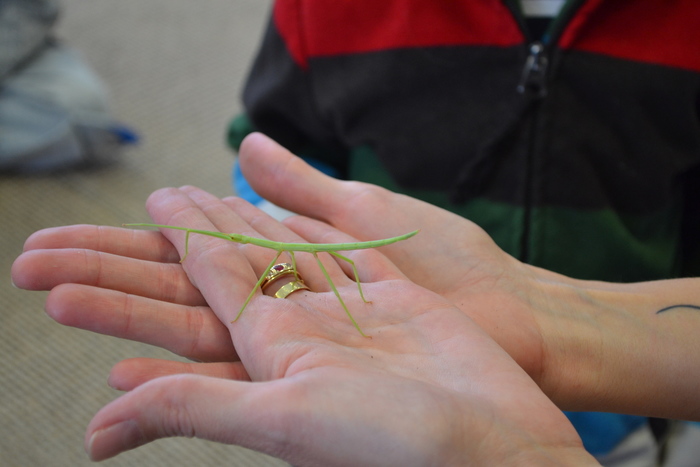 Druhé zvířátko bylo trochu neviditelné. Tedy pokud ho dáte na zelené větvičky. Strašilka, pakobylka růžkatá je hmyz a vypadá úplně jinak než moucha, či třeba komár. Prý jsou i strašilky, které vypadají jako lístky, nebo staré suché větvičky. Pakobylka je zvířátko zajímavé, ale co si budeme nalhávat, někteří z nás začali trošku zívat.