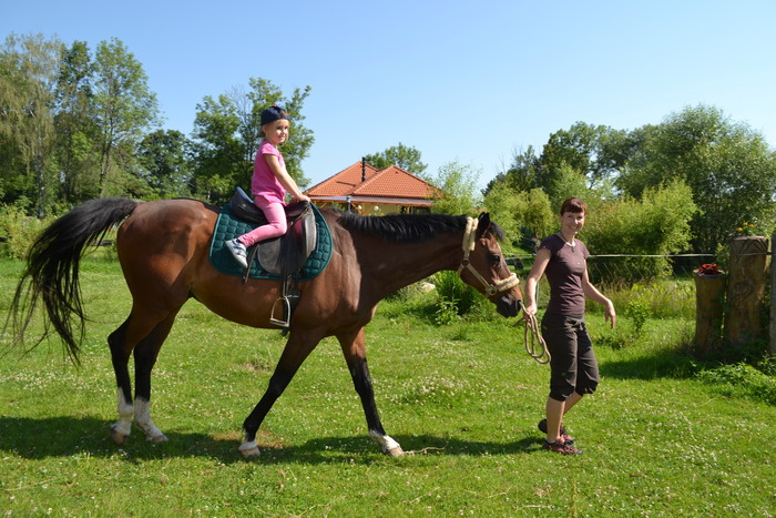 Máme my to ale štěstí, že v naší vesnici bydlí kromě dětí i koníčkové. A ještě větší štěstí máme, že se na ně můžeme chodit občas podívat, a dokonce si i zajezdit. Což není jen tak. Před ježděním je třeba koníky vykartáčovat a hlavně si vyslechnout pravidla, aby tato zábava byla bezpečná, a pro nás i koníky příjemná. Také jsme si prohlédly a pohladily králíčky s morčátkem.