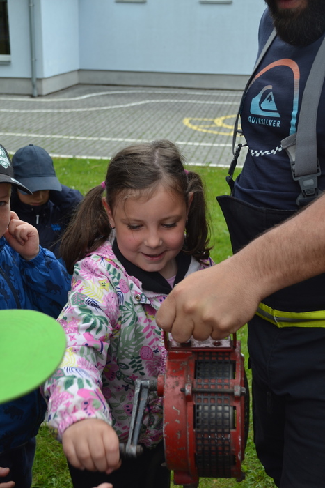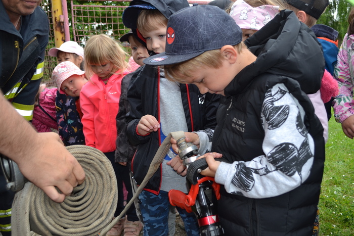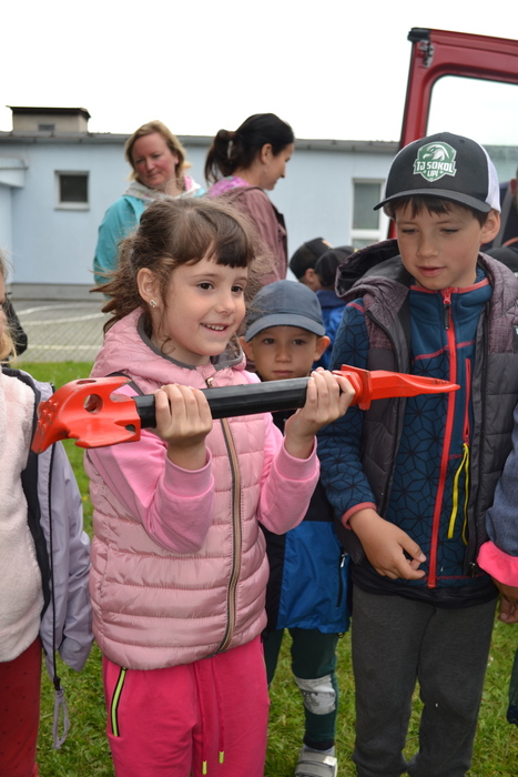 Nebojte se, dnes v Lipí nehořelo! To jsme si jen zkoušely, jak se zapíná hasičská siréna. To není jen tak zmáčknout knoflík, to musíte přesně vědět který knoflík a na jak dlouho. A ta správná siréna se dokonce točí klikou. A to je pěkná dřina. Ještě větší dřina je běhání s lahví na zádech a s maskou na obličeji. Musíme se přiznat, to jsme nezvládly. To zvládnou jen opravdoví silní hasiči, kteří nám dnes přijeli svoji náročnou profesi představit. Ukázali nám vybavení hasičského vozu, dokonce nás v něm provezli a pak jsme si vyzkoušely opravdickou hasičskou práci. Nehasily jsme oheň, ale pokusily jsme se trefit proudem z proudnice lahev vody. Všichni, ano všichni! jsme se trefily! Můžou se z nás stát hasiči. I když být hasičem neznamená jen hasit oheň. Páni hasiči nám povídali, že pomáhají při povodních, nehodách, prořezávkách stromů, a dokonce při zatoulaných koťátkách na stromech.