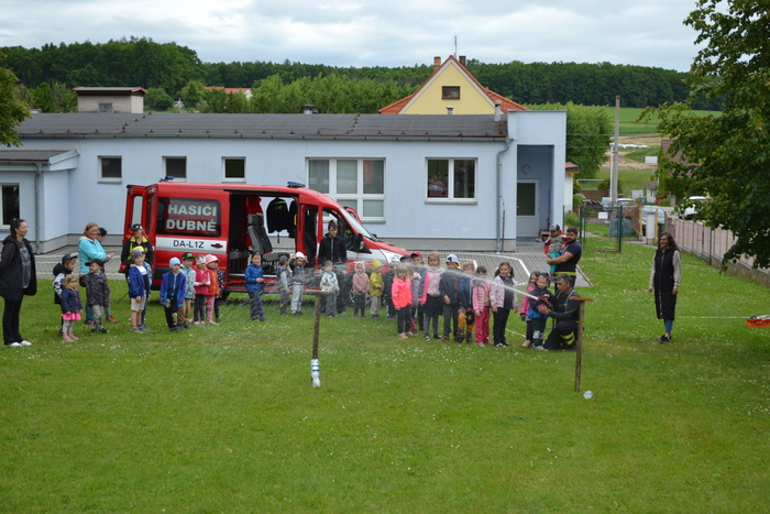 Veliké poděkování patří hasičům z Dubného, kteří nás svojí ukázkou tak zaujali, že jsme málem zmeškaly oběd.