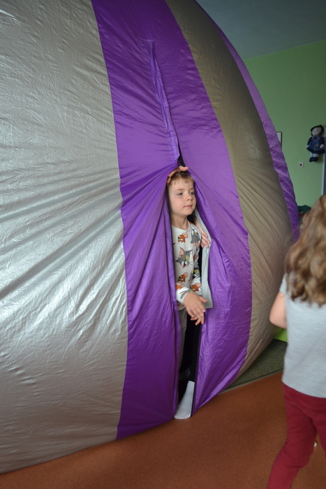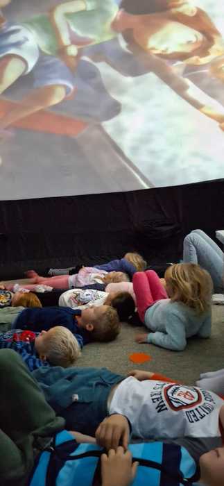 Dnes k nám přijelo kino. Chvíli to vypadalo, že to není kino, ale balón, ve kterém odletí celá naše školka. Ba ne, bylo to kino, ve kterém se můžeme povalovat po zemi. Nejprve se šla povalovat Sluníčka a opravdu vyletěla až do nebes. Né v balónu, ale přímo v raketě. A hned až ke hvězdám, oblétla planety, podívala se na naši Zemi z výšky, a dozvěděla se proč na ostatních planetách nemůžeme žít.