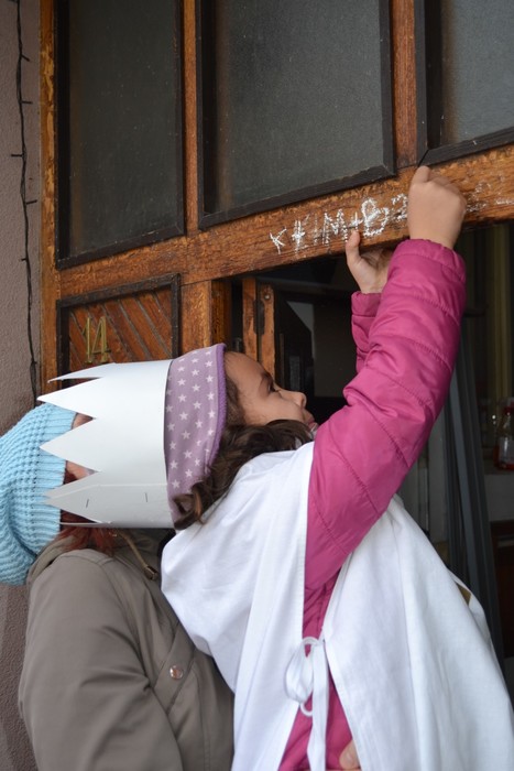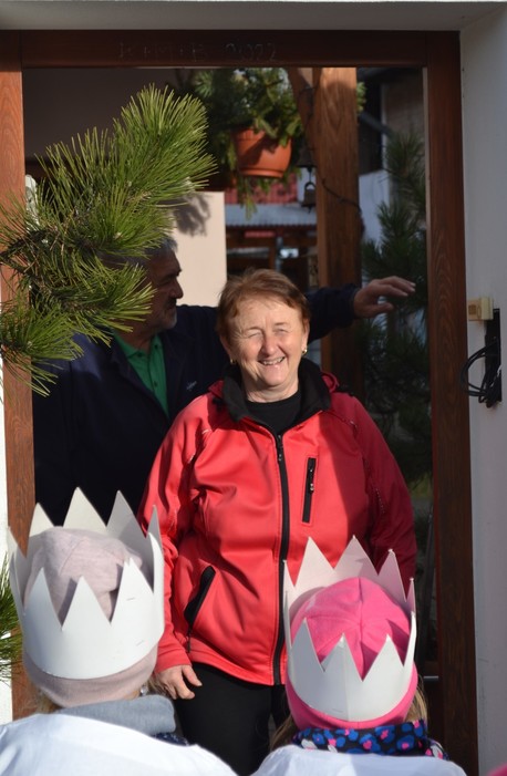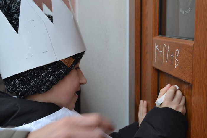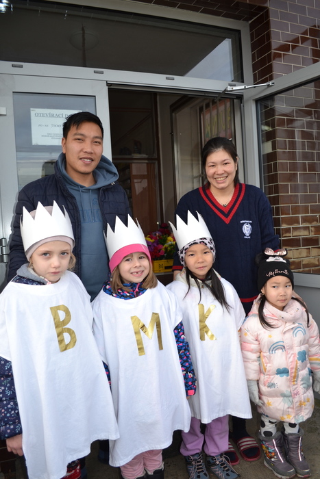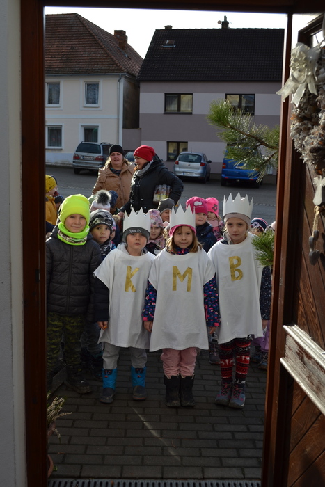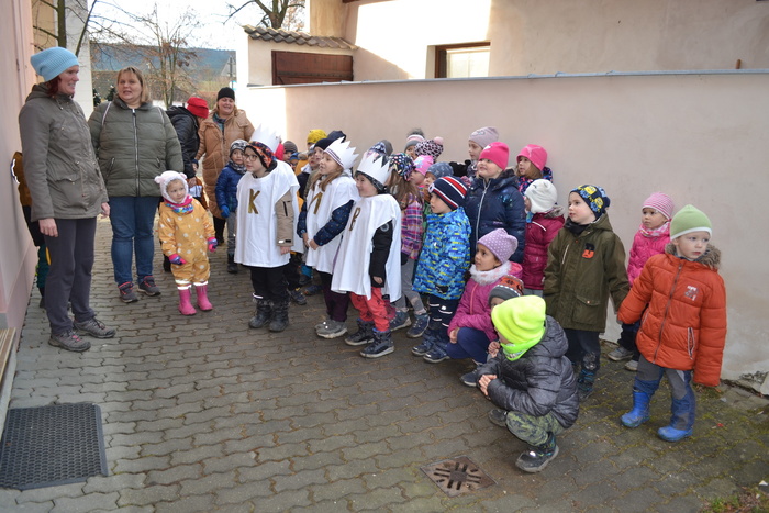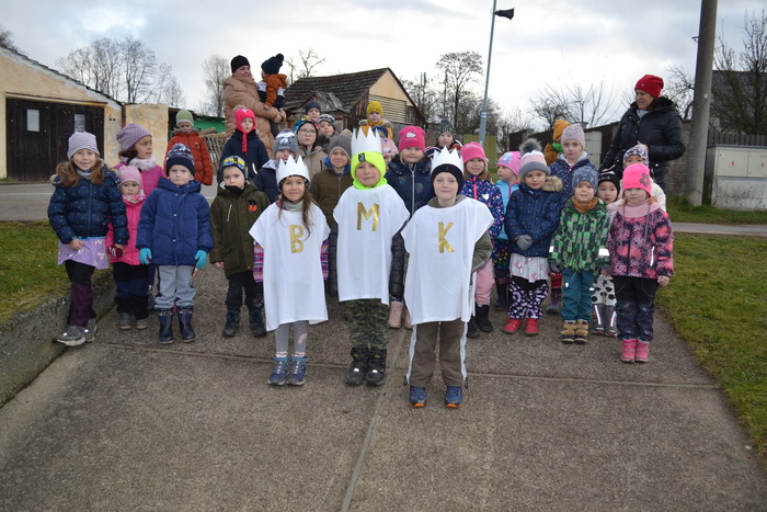 Barevné macešky si zvesela kvetou pod vánočně vyšňořeným oknem a zima se pere s jarem. To nás ale nezmýlí, my dobře víme, že jaro ještě nevyhraje. Je začátek ledna a dnes je výročí dne, kdy do Betléma k Ježíškovi přišli tři králové a přinesli mu dary. I my jsme se vydali na cestu. Né do Betléma, to bychom asi do oběda nestihli, ale alespoň po Lipí. ,,My tři králové jdeme k vám, štěstí zdraví vinšujem vám…“. Takhle krásně jsme zpívali sousedům před vraty, až se vrata otevřela a z nich vykoukli zvědavé usměvavé tváře. Naše zpívání bylo odměněno sladkou koledou. Ještě se na vrata naši tři králové podepsali a už bylo na čase jít zas do školky. Dnešní den se nám moc líbil a za koledu všem moc děkujeme.
