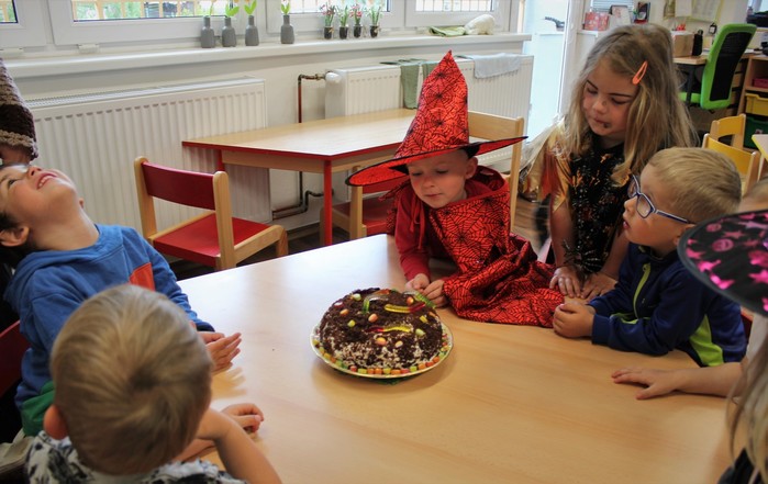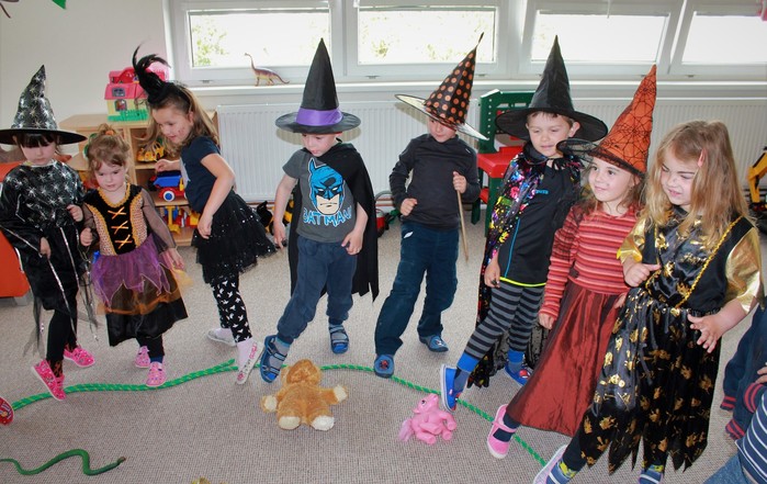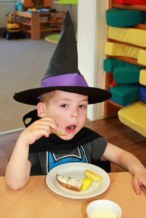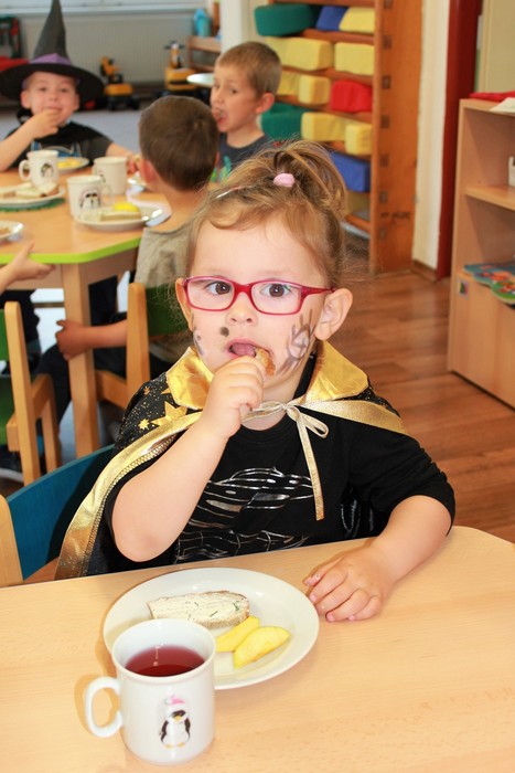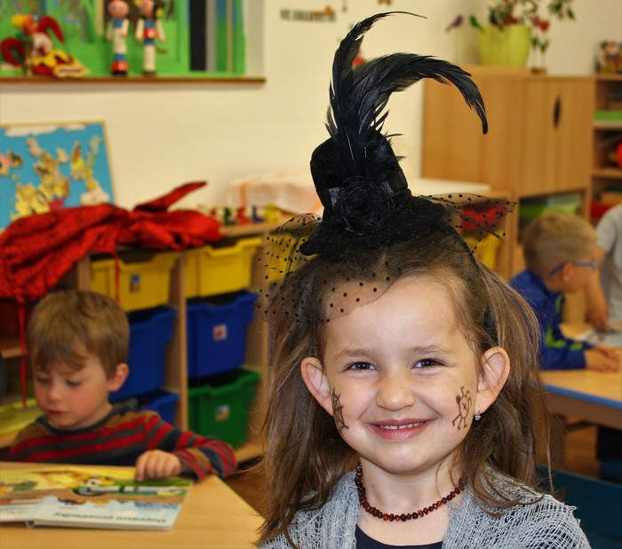 Čarodějnické dny máme rády. Můžeme se načančat po čarodějnicku, zahrát bláznivé hry a zblajznout dobroty, které nám maminky připravily. Děkujeme.