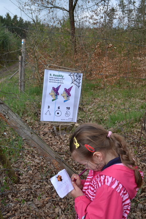 Taky jste dnes po ránu cítili ve vzduchu vonící jaro? My ano a abychom si ho řádně užily, tak jsme hned po svačině vyrazily na procházku. Ale ona to nebyla procházka obyčejná, byla to procházka čarodějnická! Proč? Protože už je tak nějak dáno, že poslední dubnový den patří čarodějnickým rejdům. Čarodějnice Káča asi věděla, kudy se na procházku vydáme, zarejdila si a podstrčila nám pod nos spoustu úkolů. U některých jsme se zapotily, u jiných nasmály, ale všechny jsme správně splnily. Jak víme, že správně? Protože jsme si na papírky malovaly symboly správných odpovědí, ve finále si symboly nahradily písmenky a všem nám vyšla tajenka! Jaká? Tak to vám tady nenapíšeme. Proč? Protože se čarodějnici Káče zdálo, že je nás nějak málo a ráda by, kdyby se po její čarodějnické stezce přehnalo větší množství šikovných dětí. Čarodějnická stezka za Lipím, v místě, které vaši rodiče jistě poznají z mapky, zůstane otevřena do nedělního odpoledne. Tak si vezměte papíry, tužky, dobrou náladu a vyrazte na ČARODĚJNICKOU STEZKU. Proč? Protože vás to bude bavit, protože čarodějnice Káča čeká na maily se správnými tajenkami a hlavně……. jaro přeci tak krásně voní. .................A protože jaro tak krásně voní, tak se to na čarodějnické stezce opravdu rojilo. Máme radost, že se tím mohla akce účastnit i Sluníčka, která zatím nemohou chodit do školky. Za fotky postřehy děkujeme :-)