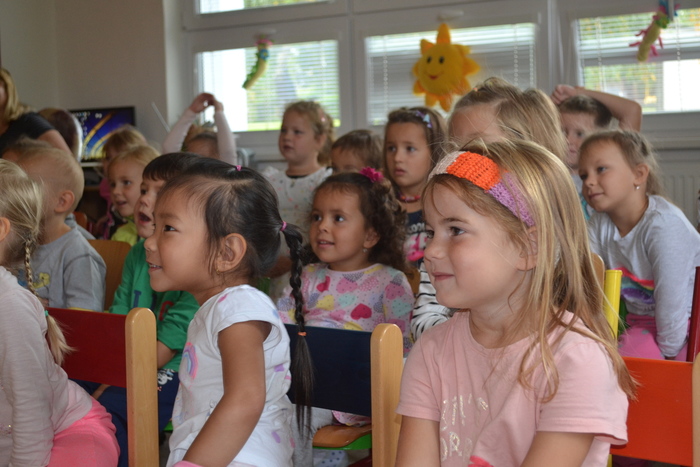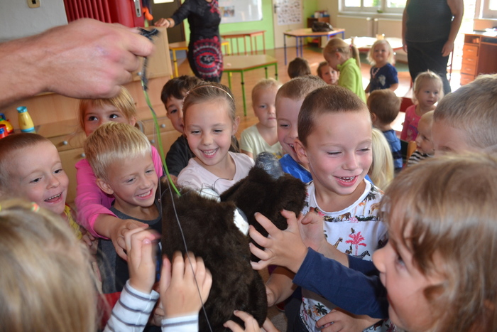 ,,A ještě mám jedno upozornění pro paní učitelky“ povídá příjemný pan herec svým hlubokým hlasem. ,,Jestli se děti budou drbat, pak vězte, že jsme přivezli vše, co jsme mohli.“