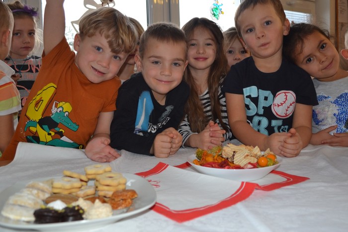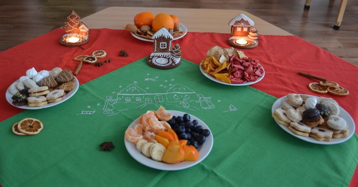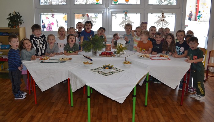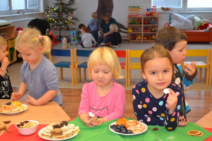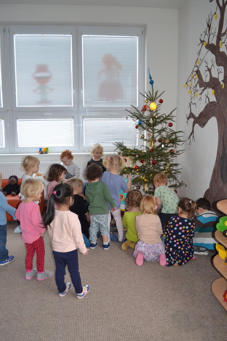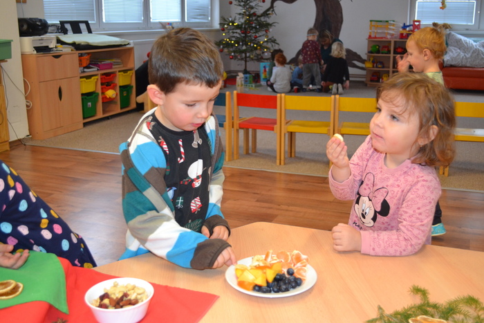 Po svačince jsme si rychle vyrazily užít sníh a sotva jsme se trochu vydováděly, už na nás čekal ve třídě zázrak. Rozsvícený stromeček, pod ním dárečky, a ještě k tomu slavnostní tabule plná dobrot. Asi jsme byly celý rok hodné. Teď nastal čas udělat ve třídě ten správný vánoční binec, prozkoumat nové hračky, ochutnat ze všech dobrot…… no prostě si vánočně užívat. Užívání se nám móc povedlo. Děkujeme Ježíšku. ……………a maminkám děkujeme za zaplnění slavnostní tabule.