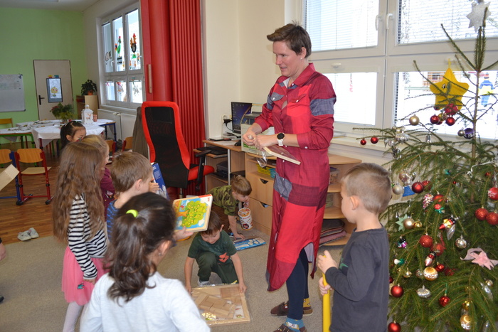 Slyšeli jste taky ráno to krásné ticho? Takové to zvláštní, měkoučké, kdy zní všechny kroky z venku jako kočičí našlapování. To se nebe nad ránem otevřelo a na Lipí vysypalo spoustu nadýchaných lehoučkých bílých vloček. Sotva jsme to bílé nadělení uviděly za oknem, už nás v peřinách nic neudrželo a honem jsme chvátaly do školky. To jsme dobře udělaly, protože se sněhovými vločkami se na zem snesl i Ježíšek. Ano, trošičku si přivstal, ale asi ho přilákal sníh.