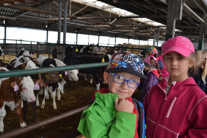 ,,A teto, já vím, že je kráva přežvýkavec!“ ,,A teto, kráva má bachor, čepec, knihu a sléz.“ Zahrnovaly jsme tetu, která nám dnes dělala průvodkyni, informacemi, kterými nás vybavila paní učitelka. Šly jsme se dnes na knihu a čepec podívat do kravína. Né, nečtou si tam kravičky knížky ve slušivých čepečcích. To jsou totiž názvy kravského žaludku. A to už my, velké Kočičky, víme. Po dnešku jsme ještě chytřejší. Viděly jsme kravičky s hodně velikými bříšky, v kterých jsou uvelebena telátka, než se mamince kravičce narodí. Viděly jsme maminky a malá telátka už narozená. Teta nám vyprávěla, jak to u nich chodí s dojením, drbáním, okusováním vitamínů a taky nám ukázala lahev na mlíčko pro telátka, která nechtějí pít od maminky. Někteří z nás si krásné hlavičky podrbaly a všichni můžeme říct, že to byl moc hezký den.