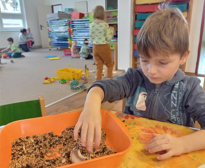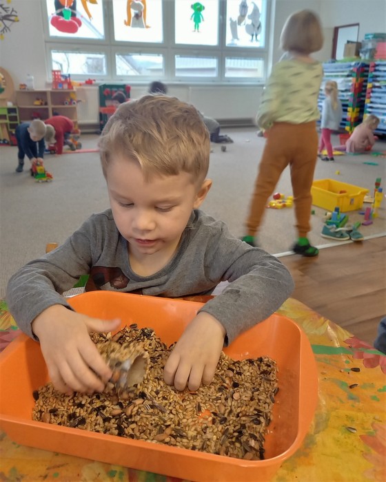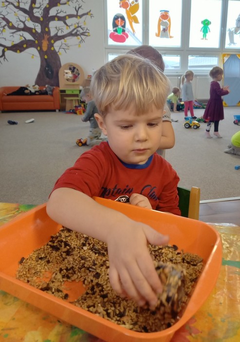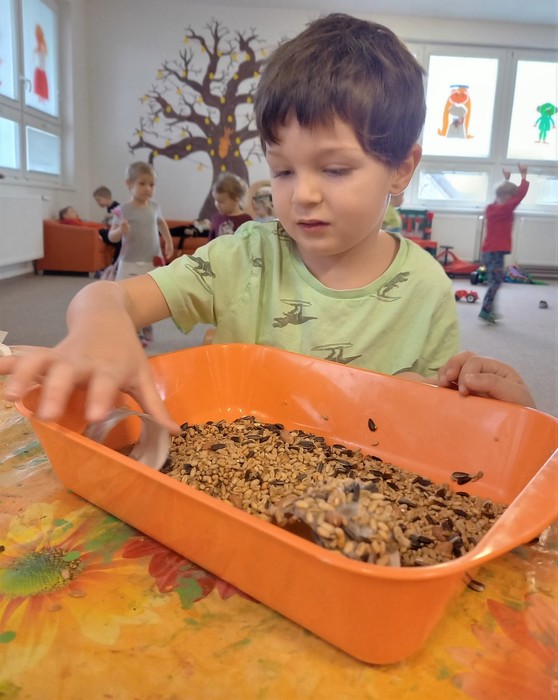 Že ta zima nakonec přijde, i když chvíli vyhrávalo jaro, jsme přeci jen čekali. A proto jsme se minulý týden na zimu připravovali. Vyrobili jsme ptáčkům krmítka ze sádla a zrníček, která jsme rozvěsili po zahradě a v lese. Teď, když konečně napadl sníh, budou ptáčci určitě rádi, že jsme si na ně vzpomněli.