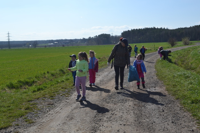 ,,Odpadééék! Pančelkó odpadééék!“ Pokud jste dnes z luk zaslechli takovéto halekání, vězte že se v okolí Lipí nepohybovala nějaká neznámá bytost, aly my, předškoláci z MŠ Lipí. Po oslavě včerejšího dne Země jsme dnes vyrazili zase trošičku té naší Zemi pomoci. Měla to být jen tak obyčejná procházka, na které sem tam upozorníme paní učitelku na odpadky, které do přírody nepatří a paní učitelka je v rukavicích zvedne a dá do pytle. Jenže to jsme netušili, kolik odpadků za Lipím najdeme. Takže volání: ,,odpadééék“ znělo mezi námi celé dopoledne. Šli jsme loukou, lesem i po cestě a úplně všude bylo co nacházet a naházet do pytlů. Úplný odpadkový poklad jsme nalezli pod posedem. Tam jsme zaplnili jeden celý pytel. Cestou necestou jsme dorazili k ohradě s chlupatými kravičkami a daňky. To úplně jistě nevíme, zvěř se držela od plotu dál a my jí viděli jen zdáli. Zato jedna srna nám přeběhla přímo před nosem. Div jsme do ní nevrazili. Asi s námi chtěla popřát Vojtíškovi k svátku. Oslava dnes proběhla na lezené louce. Cesta zpět nás zavedla ke krásnému rybníčku, a kolem rozkvetlých sasanek na louku nad Lipím a pak už nám jen zbývalo seběhnout ke školce a jít se odměnit výborným gulášem s knedlíkem. Na asi šestikilometrové trase jsme nasbírali spousty odpadků a vůbec nechápeme, jak se lahve, plechovky, pytle a kdo ví co ještě mohlo do lesa a luk dostat. Asi nějaké kouzlo?