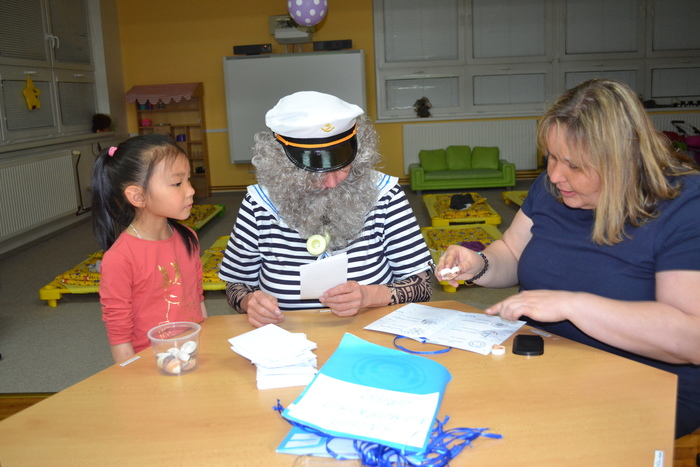 No jo, jenže na dobrodružnou plavbu se můžou vydat jen skuteční námořníci. Ti, co mají průkazy. Námořník Jiří nám takové průkazy rozdal, jenže bez správných razítek stejně neplatí. Ale že jsme děti nebojácné a šikovné, tak získat razítka za plavbu mezi děsivými útesy, za ulovení ryb, za záchranu želvích vajec a za další úkoly, nebylo problémem. Námořník Jiří jen nevěřícně kroutil hlavou, že jsme získali všechna razítka dokonce nám zatleskal. Poté nám ještě rozdal důležité dopisy pro rodiče a mušličky pro štěstí. Rozloučil se a odplul do svého domovského přístavu v Jiřičné.