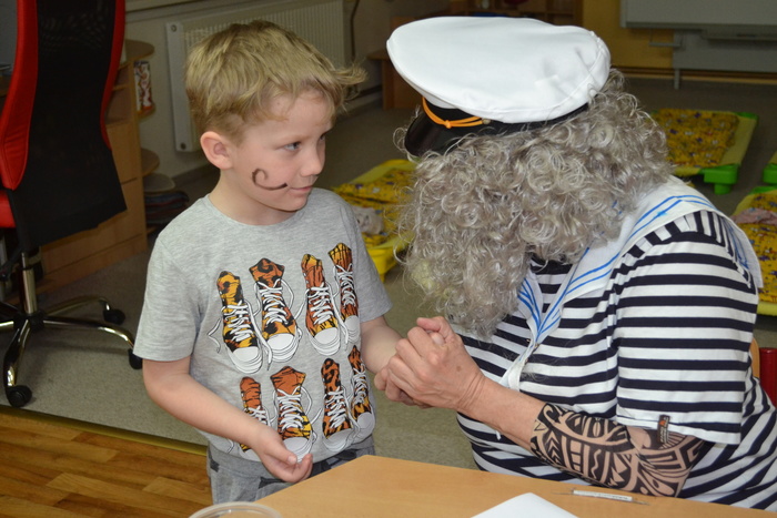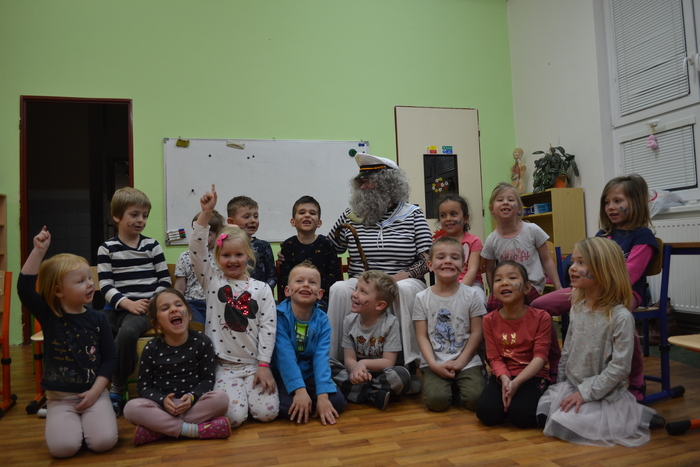 Pššš, právě usínáme. Někteří z nás tedy už tvrdě pochrupují. Bodejď by né. Máme za sebou náročnou plavbu. V podvečer jsme totiž před školkou potkali starého unaveného námořníka. Sotva nás naučil ten správný pozdrav, ……víte, že se námořníci zdraví AHÓJ? žádné nazdárek, či dobrý den, a naše AHÓJ bylo slyšet určitě až na moři,…….. tak nás pozval na dobrodružnou plavbu.