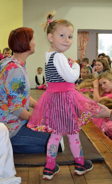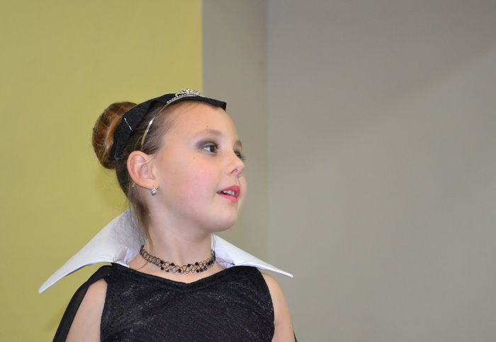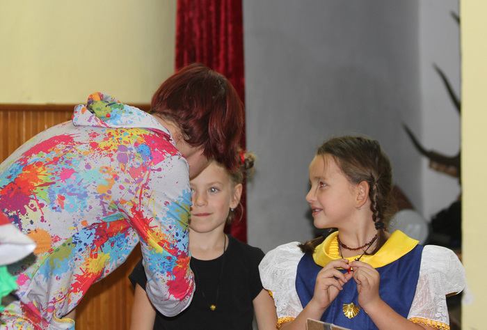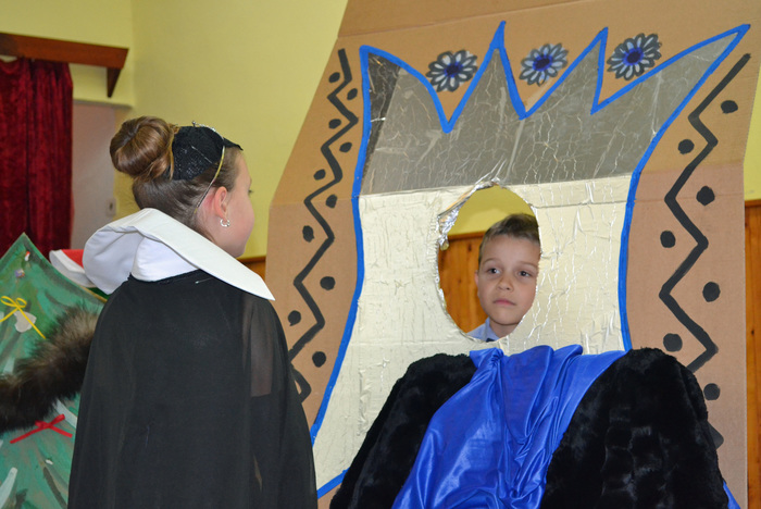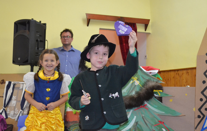A už přichází čas pro šikovnou vyprávěčku, zlou královnu a kouzelné zrcadlo. Že už jste uhodli o kterou pohádku jde? No jasně. Krásná královna v černém se od pravdomluvného zrcadla dozvěděla, že není nejkrásnější a poslala myslivce zničit sličnou Sněhurku. Jenže hodný Tomášek přinesl Sofince raději čokoládové srdce Milka a Bětčino srdce i nadále bilo. Bylo zdrávo v trpasličí chaloupce. Alespoň dokud se nedostavila zakuklená zlá královna s otráveným jablkem. A konečně přichází čas na onoho pořádného hubana a potlesk pro naše Kočičky. Nezbývá, než poděkovat všem skvělým hercům a zeptat se Honzíka, jak to bylo s tou pusou. ,,Dal jsem jí pořádnou“, takže je vše v pořádku a Kočičky můžou vyklidit podium pro vystoupení angličtinářů. Pak už se jen pokocháme pohledem na skvělý Bárováček a rozprchneme mezi krámky a dílničky. Cosi pokoupíme, vyrobíme a hurá domů.