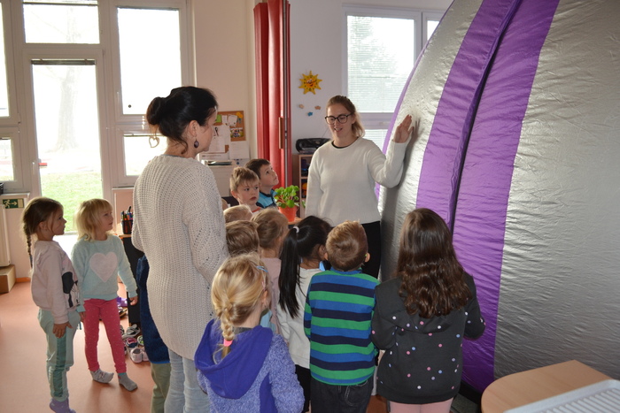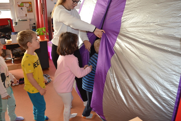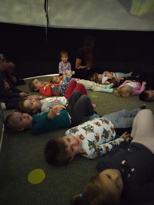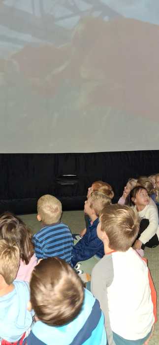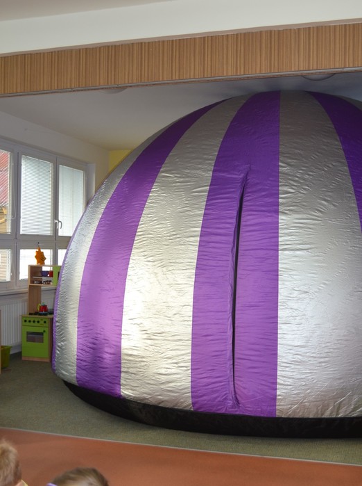Dnes k nám přijelo kino. Chvíli to vypadalo, že to není kino, ale balón, ve kterém odletí celá naše školka. Ba ne, bylo to kino, ve kterém se můžeme povalovat po zemi. Nejprve se šla povalovat Sluníčka a opravdu vyletěla až do nebes. Né v balónu, ale přímo v raketě. A hned až ke hvězdám, oblétla planety, podívala se na naši Zemi z výšky, a dozvěděla se proč na ostatních planetách nemůžeme žít.