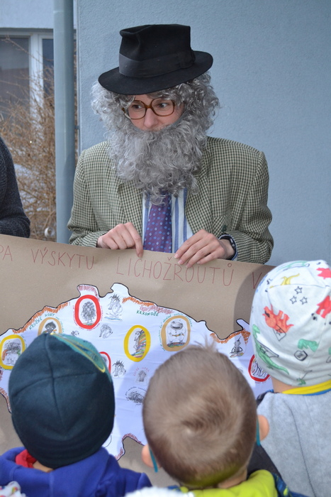 Ale nepředbíhejme. Zvečera k nám zavítala očekávaná návštěva. Prof. Ing. René Kadeřábek. Nevíte, kdo to je? To je moc důležitý pan profesor, který zkoumá život lichožroutů. Mapuje jejich výskyt v Čechách a nás poprosil o pomoc. Potřebuje doplnit bílá místa na mapě a vše sám nestíhá. Zeptal se, zda máme o životě lichožroutů nějaké vědomosti a moc ho potěšily naše správné odpovědi. Víme, že se živí ponožkami, a to hlavně jen jednou z páru. Z toho vyplývá plán, jak zjistit jejich přítomnost. Narafičíme návnadu. Návnadou budou páry ponožek pověšených na prádelní šnůře.
