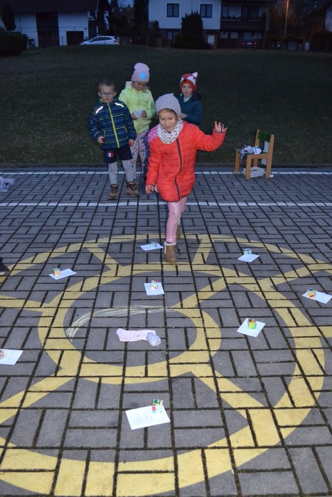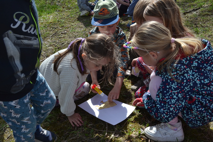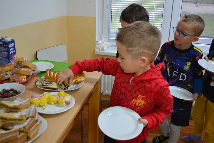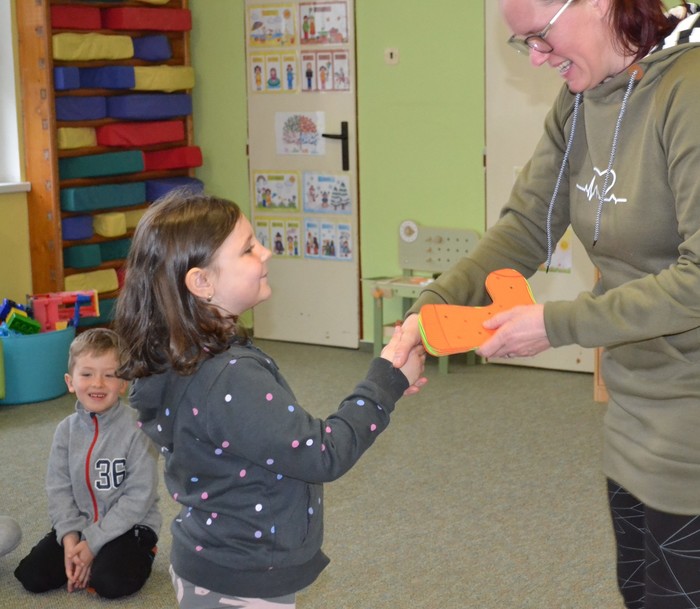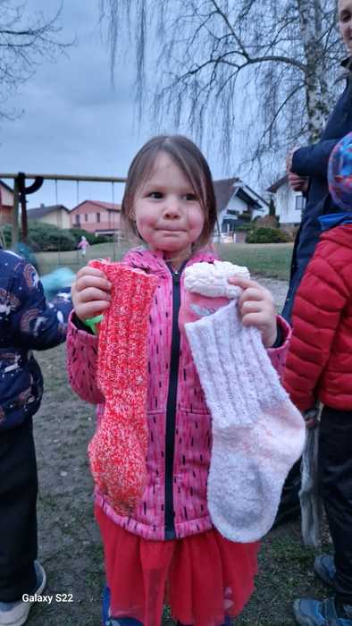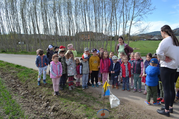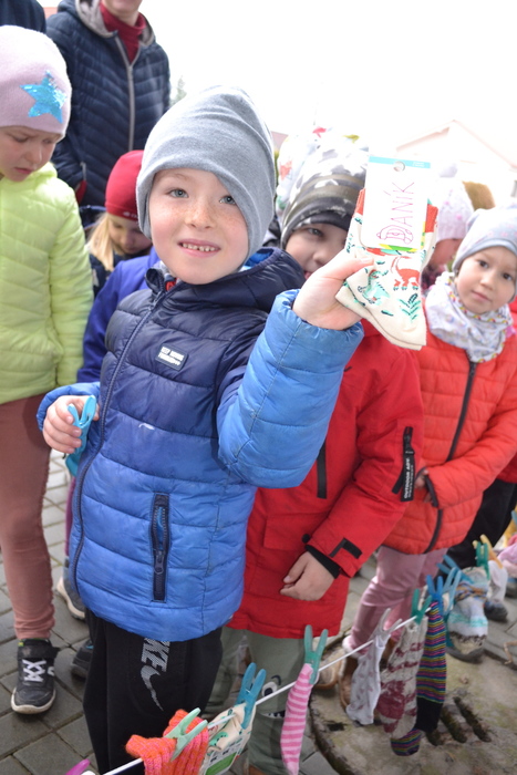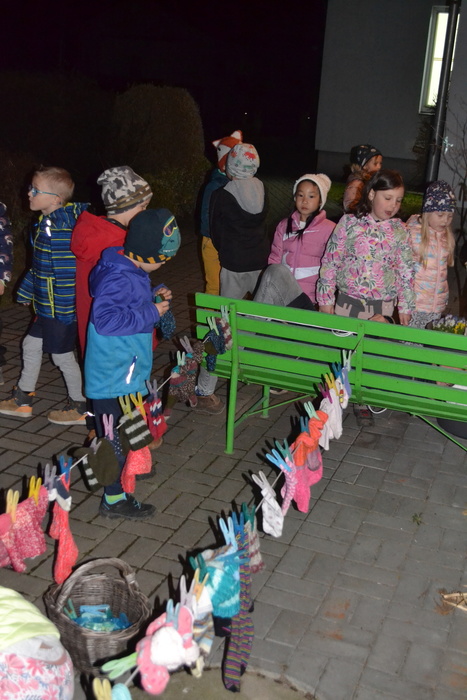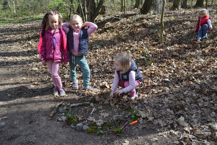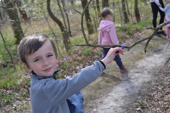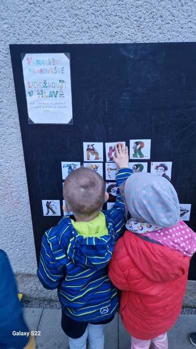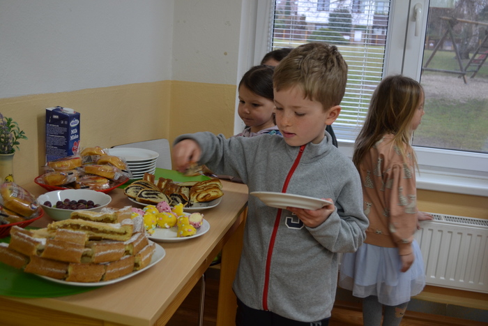 Prý tudy běžel zajíček a měl zádech nůši! Povídala paní učitelka Lucka, když nás konečně na naší procházce doběhla. To znamená, že jdeme dobrým směrem. Potvrzují to i mašle uvázané na jarně zelených větvičkách. Každý z nás si jednu mašli najdeme, prý ji budeme na konci cesty potřebovat. Zajíčková cesta nás vede lesem, kolem farmy s koněm, mezi loukami, rozkvetlými stromy a po hrázi rybníka. Občas nás zastaví rozcestí s dvojí barvou šipek. Po které se dát? To nám napoví úkol na barevném vajíčku. Po jeho splnění zjistíme, kterou cestou se vydat vstříc dalším úkolům a snad i nějakému překvapení. A tak jsme plnily úkoly. Třeba sestavit obří kraslici z přírodnin. Projít, proskákat a proběhnout vyznačenou trasu. Vyluštit velikonoční křížovku, sestavit puzzle … Vše se nám podařilo a vajíčka nás tím dovedla až ke žlutě rozkvetlému keři. Ten se líbil asi i zajíčkovi, protože přesně pod ním, hned vedle narcisek, nechal nůši s odměnou. A teď honem do školky, už tam na nás čeká velikonoční oběd, a dokonce i někteří rodiče. Pooběďáckým rodičům se omlouváme za zpoždění, ale to víte, někdy se nám ta zážitková cesta prostě protáhne :-). A ještě: ,,Jak se říká velikonočnímu vajíčku?“ ,,Já vím! Velikonoční vajíčko!“ A také už víme, že Vánoce vánoce přicházejí… není ta správná velikonoční koleda.