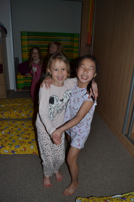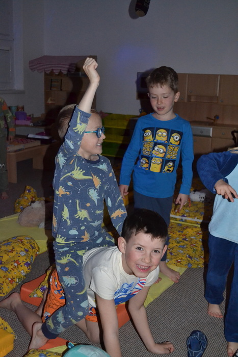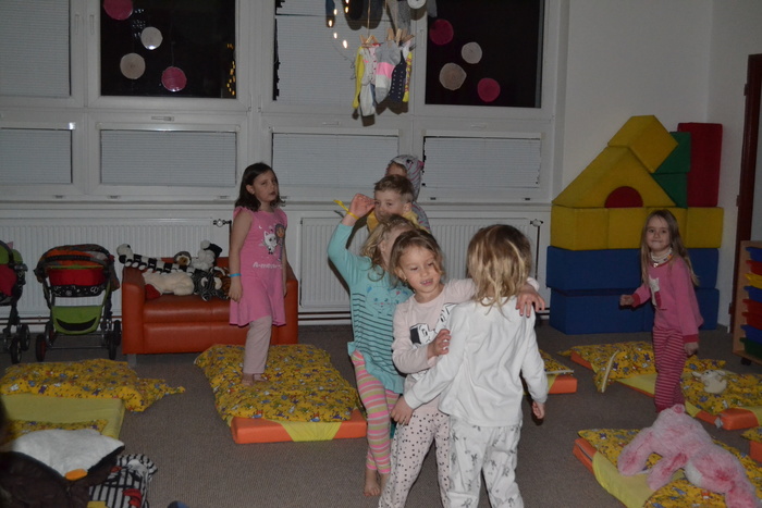Rozhovor dvou holčiček vyslechnutý před čtrnácti dny: ,,Budeš spát ve školce?“ ,,Jasně, budu, až usnou učitelky, uděláme mejdan“. Nebojte, ony holčičky, i ostatní děti už mírně pochrupují, z mejdanu nebude nic.