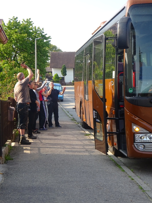 Všichni jsme se sešli venku, abychom provětrali batůžky s dobrotami a Kočičky si ještě stihly rychle doběhnout na zmrzlinu. Sluníčka o zmrzku nepřijdou, ale teď už by jí nestihla. Protože nám jede autobus, a ten, jak víme, nečeká. Zato nás ve školce čeká oběd a postýlky. A do těch už se všichni těšíme.