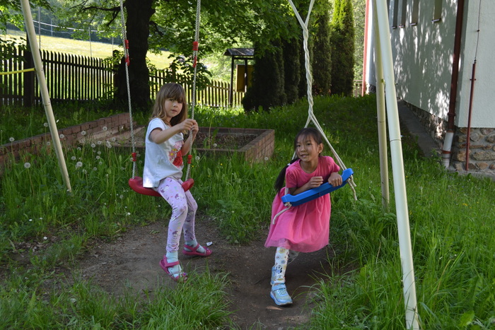 Do oběda ještě trochu času zbývá a ten využijeme k montování skřítků a výrobě triček. I tak si stihneme pohrát na hřišti.