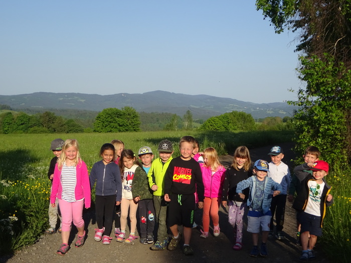 Slíbené pokračování fotbalu odkládáme a jdeme vychodit knedlíky na procházku. Opět se opakují fantastické výhledy do krajiny. ( Tady si dovoluji vstoupit s dospěláckým postřehem- I nás, dospělačky, připravené hry baví, ale až budu na tuhle akci vzpomínat, asi se mi vybaví právě tenhle okamžik bez připravené zábavy. Děti byly neuvěřitelně pohodové, veselé a upovídané. Výbuchy smíchu se ozývaly v podstatě nepřetržitě. Padala hláška za hláškou a atmosféra byla úžasná. Jen tak mimochodem: až odtud budeme odjíždět, nebude tu žádná Šumava- děti celou Šumavu otrhají. A víte, že se připravují na založení rockové kapely? Už mají název. Rozhodují se mezi ,,Tornádo v bouři“ a ,,Stromobití“. Obsazení už mají rozhodnuté a hlasy vypracované. To můžeme dosvědčit.)