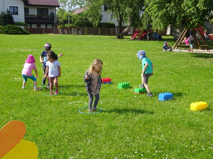 Ještě jsme si pomalovaly dřevěné skřítky, které jsme dostaly od Těšíka („ty jsme dostaly od skřítka Radostíka“) a těšíme se, že si je zítra sešroubujeme. Nezapomněly jsme pořádně prokoumat zahradu a věřte, že je tak velká, že nám to zabralo dost času a sil.