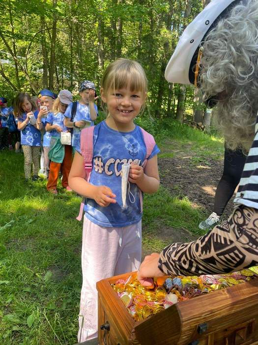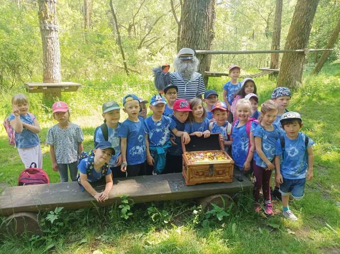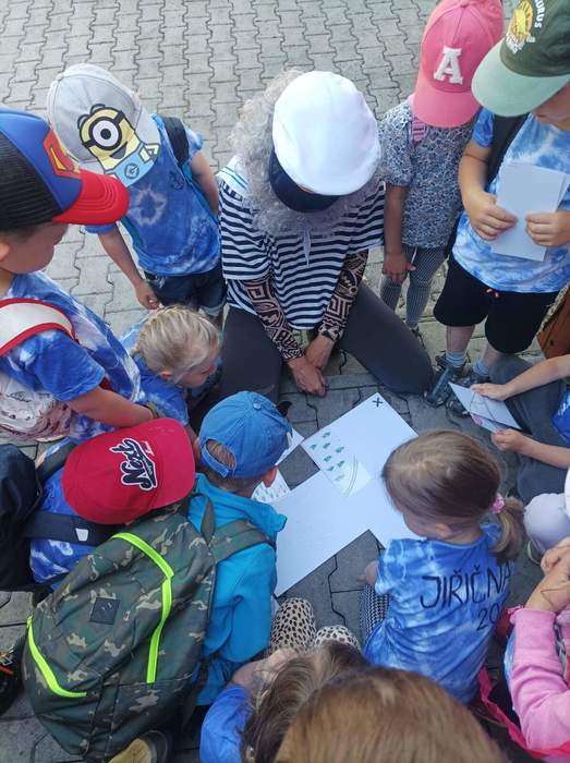 Dnes ráno jsme do školky nešly jen tak. Táhly jsme s sebou kufříky, na zádech batůžky a trochu teskna i těšení na našich malých dušičkách. Maminky a tatínkové nás přišli před cestou ještě povzbudit, dát nám poslední pusu, zamávat… A už frčíme. Náš cíl: Jiřičná. „Já chci taky bydlet v tom luxusním domečku,“ napadalo některé z nás, když jsme viděly, že se jde ubytovat první pokoj. Máme to tu nádherné, ale na horní palandu se všichni nevejdeme. I přesto jsme téměř všichni odpolední odpočinek prospaly. A pak? Pak už to jelo pěkně fofrem až do večera. Nejdřív přišel námořník Jiří s pěkně drzým, ukecaným a značně sešlým papouškem. Nejdřív jsme byly dokonce přesvědčené, že to vlastně žádný papoušek není. Ale byl, protože poté, co jsme na loď sehnaly zásoby a mohly vyplout, šly jsme podle barevných per. Ta nám papoušek cestou nechával, abychom našly Mravenčí ostrov s ležením pirátů. A protože jsme velmi šikovné děti, k ležení jsme dorazily naprosto bez problémů. Jenže co teď? No řekněte, vy byste se ani trochu nebáli? My jsme se vůbec nebály náš strach přiznat, a už vůbec jsme se nebály ten náš strach překonat a do pirátského doupěte se vypravit. A stálo to za to! Našly jsme kusy nějakých map, prapodivné klíče (někteří z nás je mají doma na záchodě) a taky lodní deníky. Je teda fakt divné, že jsme nenašly žádný poklad. Ale co se dá dělat, paní učitelky nám vysvětlily, že to zítra zkusíme znova. Tak snad už to klapne a ten poklad objevíme. Večer už jen fotbalový zápas Česka proti Česku přímo pod majákem, sprcha, zuby, pohádka, pohádka, pohádka, pohááád…. Chrrrrr…