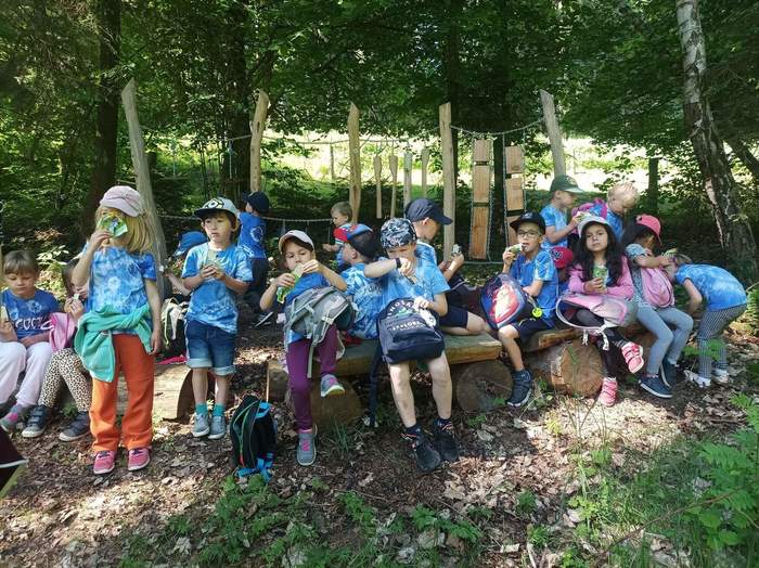Po návratu na baráček jsme za naše ukázkové chování dostaly jako odměnu k obědu kuřízek s brkaší a suvenýrek na šňůrku. Naše paní učitelky souhlasily s tím, že si to opravdu zasloužíme. Pak už jen autobus, prospaná cesta, zablokovaný příjezd ke školce, potlesk panu řidičovi, davy rodičů, úsměvy, slzičky (maminek, ne naše) a tím končí naše přeslavná plavba, která se asi nezapíše do dějin, ale do našich srdíček a krásných vzpomínek určitě.