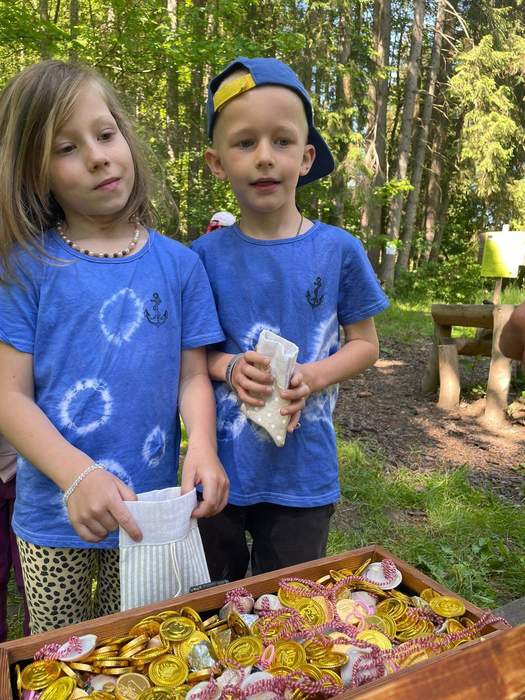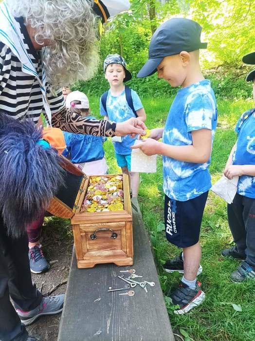 Včera jsme šly spát brzy. Mořský vzduch a práce na lodi prostě unavuje. O co dřív jsme šly spát, o to později jsme vstávaly. Nasnídat, sbalit kufry, vyklidit pokoje, sváču do batůžku a ven. A z ničeho nic mezi námi stojí námořník Jiří i se svým roztomilým a krásným, pestrobarevným papouškem (no jo, už jsme si na něj zvykly). A že prý se na tu poslední plavbu vydá s námi. Takže složit kousky map, které jsme v uplynulých dvou dnech získaly, a vzhůru na palubu. Po vylodění se na místě, které nám na mapě ukázal křížek, nikde nic nebylo. Zalitovaly jsme, že nemáme lopaty, protože poklad přece může být úplně klidně zakopaný. Nebo taky může viset na větvích stromů. Přece jen ta mapa nebyla v 3D. Nakonec ho ale Miky našel. Jen tak, na zemi. To jsme se teda divily, protože jsme o něj všichni málem zakoply, když jsme ho míjely. Teď přišly na řadu klíče, které jsme také poctivě sbíraly, vyhrávaly, získávaly s dopomocí štěstí. Devět jich vůbec nepasovalo a do zámku nešly ani zastrčit (třeba ten, co máme doma na záchodě). Ze zbylých tří vybral Lukášek D. jeden jediný a světe div se… Páni, óóóóóó, zlato, drahé kameny, šperky, mušlový přívěsek a další zlato… Víc už se blýskaly jen hvězdičky v našich očích. Každý jsme dostaly svůj zasloužený díl pokladu. Námořník nám ještě jednou poděkoval, rozloučil se s námi, a za chvilku přiběhla zklamaná paní učitelka Lucka, že o celou tu zábavu přišla. My jsme jí ale všechno důkladně povyprávěly, pěkně jeden přes druhého.