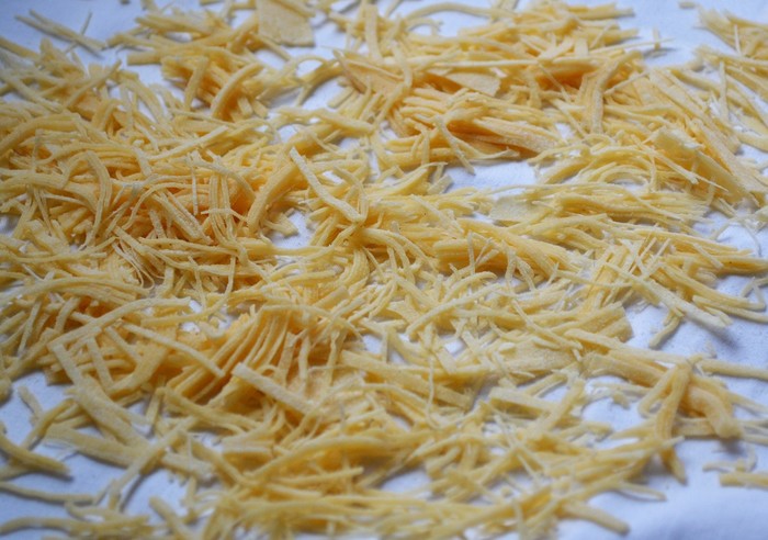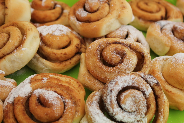 Vyválíme placku 1cm silnou, posypeme cukrem a skořicí a mírně pokapeme máslem. Srolujeme jako roládu a krájíme 1cm silné plátky. Pečeme na 160 °C - 170 °C do zlatova.